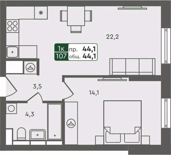 • ✅ Минимальная площадь: 42,8 м²