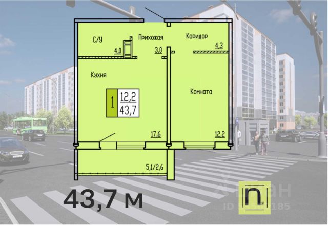 Просторная 1-комн. квартира с предчистовой отделкой в ЖК "Дом Кино" на 9 этаже. Общая площадь: 45.75 кв.м., жилая: 12.2 кв.м., площадь просторной кухни-гостиной: 21.3 кв.м. Все окна выходят на одну сторону. В квартире один балкон, один совмещенный санузел. Высота потолков 2.7 м. Дом монолитный, многоподъездный, переменной этажности, от 8 до 15 этажей. Квартира находится в 6-й секции высотой 15 этажей в корпусе 1. На этаже 7 квартир. В подъезде 2 пассажирских и 1 грузовой лифт. Окончание строительства - 1 квартал 2027 года. Оформление сделки по договору долевого участия. Квартира с кухней-гостиной и одной спальней в Доме кино. Особенности планировки: балкон, гардеробная, предчистовая отделка. Район Центр города "Дом кино" находится в самом центре Кургана, на пересечении улиц Пролетарская и Карла Маркса. Район насыщен всей необходимой инфраструктурой: здесь есть школы, детские сады, поликлиники, больницы, учреждения культуры и досуга, магазины и рестораны, офисы. Рядом расположены автобусные остановки, поэтому можно быстро добраться в любую часть города без автомобиля. В шаговой доступности от дома находится Курганский государственный университет, художественный музей, библиотека имени Маяковского, филармония, городской сквер и торговый центр "Звёздный". Проект Новая точка притяжения Проект расположен на месте бывшего кинотеатра "Звёздный". В советское время он считался лучшим в области, сотни людей собирались на премьерные кинопоказы. В 2002 году, когда зданию потребовался капитальный ремонт, "Звёздный" был закрыт. В 2012 году кинотеатр снесли, а в 2021 году землю приобрела компания Брусника — под строительство нового проекта, который получил название "Дом кино". Проект представляет собой квартал, разомкнутый в сторону сквера. Архитектура дома идентична исторической застройке района и гармонично вписывается в его панораму. Основная часть здания имеет высотность девять этажей. Башня является доминантой и ориентирована на городской сквер, ее высота 15 этажей. Фасады выполнены в теплой цветовой гамме коричневых и песочных оттенков. Яркой архитектурной деталью проекта станет арка высотой более чем в два этажа. Она раскинется над лестницей, которая ведет напрямую в городской сквер из двора. Двор Двор с выходом в сквер Двор - это приватное пространство для жителей, закрытое от машин. В нём спроектированы детская и спортивная площадки, выполненные из натуральных материалов, а также зоны отдыха. Прямой выход в городской сквер расширяет функционал двора. Жители смогут быстро попадать в общественную зону с фонтаном, детскими и спортивными площадками и местами для отдыха. Большую часть территории двора занимает зелень. Озеленение выполнено в стиле пэчворк, и вдохновлено техникой лоскутного шитья. Отдельные фрагменты ландшафта, подобно лоскутам, гармонично складываются в планировочные элементы, а затем формируют цельную композицию. Растения представлены различными видами деревьев, кустарников, а также цветущими многолетниками