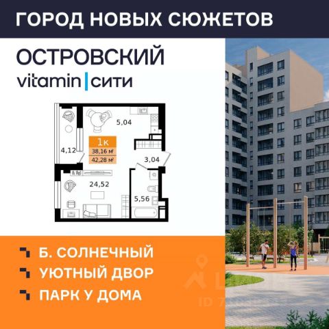"Островский vitamin-сити" — город новых сюжетов на бульваре Солнечном Масштабный проект комплексной застройки территории в динамично развивающемся районе Кургана, вблизи парка "Царёво городище". На территории комплекса запланированы жилые дома с уникальными планировками, благоустроенные дворы без машин, просторные парковки, прогулочные зоны и полноценная инфраструктура для всей семьи. Почему выбирают ЖК "Островский vitamin-сити"? Уникальная локация: жилой комплекс расположен в тихом и живописном месте, всего в 10 минутах от центра города. Парк "Семи островов": визитной карточкой проекта станет уникальное пространство площадью более 2,5 Га для прогулок и тренировок на свежем воздухе в шаговой доступности от дома. Дворы нового уровня: полностью безопасные, с игровыми элементами, разработанными по методике нейрофизиологов, богатым озеленением и удобными зонами отдыха для всей семьи. Надежность и качество: дома строятся по технологии КУБ 2,5, обеспечивающей надежность, долговечность и высокую энергоэффективность. Фасады домов выполнены в стильных натуральных природных оттенках. Не просто подъезды: в холлах зоны ожидания, колясочные, лапомойки и комнаты гигиены. Благодаря прозрачным входным группам в подъездах всегда будет светло и просторно. Продуманные планировки: вы можете подобрать квартиру, которая подходит именно вам сити-хаусы, квартиры-трансформеры, отсутствие несущих стен дают возможности для разных сценариев жизни. Выбор отделки: квартиры сдаются в предчистовой отделке, которая включает оштукатуренные стены, стяжку пола, установленные радиаторы отопления и окна ПВХ, электропроводку до квартирного щитка, выделенные мокрые зоны в санузлах. Также есть возможность приобрести чистовую отделку, включив её стоимость в ипотеку. Условия покупки: Действует беспроцентная рассрочка, а также выгодные спецпредложения и акции! Сроки сдачи: Первая очередь ЖК "Островский" будет сдана во II квартале 2027 года. Продается 1-комнатная квартира в новостройке с отделкой в Курганской области.