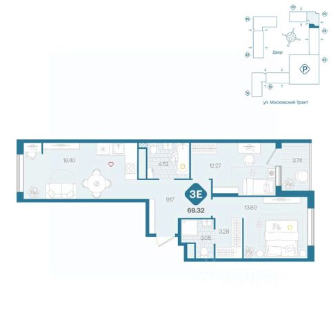 Продаётся квартира площадью 60.50 м2 в жилом комплексе "Айрис". Квартира находится на 2 этаже дома, который будет введен в эксплуатацию в 3 квартале 2027 года. Жилая площадь квартиры 16.50 м2, площадь просторной кухни — 16.70 м2. Среди особенностей планировки — изолированные комнаты с окнами на одну сторону, 1 совмещённый санузел. Жилой комплекс "Айрис" — это: фиджитал-квартал в Тюмени дома высотой от 7 до 25 этажей квартиры с системой "Умный дом" цифровые технологии как элемент благоустройства Срок сдачи — III кв. 2027 Окружение В нескольких минутах ходьбы от дома — парк "Комарово" с волейбольной площадкой, открытым кинотеатром, зонами для барбекю и катком. Неподалеку от Airis находится центр иппотерапии, где можно покататься на лошадях и взять уроки верховой езды. На территории Airis появится собственный парк с прогулочными аллеями. Инфраструктура В 5-10 минутах от квартала открыты 2 детских сада и гимназия. На шопинг можно отправиться в торговые комплексы "Колумб" и "Кристалл" — они находятся недалеко от дома. Благоустройство Уютный двор — приватное пространство для жителей. В беседках можно будет почитать книгу в тишине, а в тени деревьев устроиться на пикник. На крыше многоуровневого паркинга будет лаунж-зона с кинотеатром, баскетбольная площадка и воркаут-пространство, где можно позаниматься с виртуальным тренером — достаточно отсканировать код. Лобби Интерьеры лобби выполнены в пастельных тонах с элементами фиджитал-решений. Для отдыха и ожидания гостей создана лаунж-зона. Также есть гостевые санузлы. Колясочные Возвращайтесь налегке после прогулки с малышом — оставить коляску можно в специальном помещении на первом этаже. Кладовые Для сезонных и габаритных вещей предусмотрены отдельные кладовые на цокольном этаже. В каждом помещении уже проведено электричество и выполнена стяжка пола. Паркинг На территории — два многоуровневых наземных паркинга. Один из них примыкает к домам — из него можно напрямую пройти в парадные. Планировки Планировки квартала — от компактной студии до сити-хауса с собственным палисадником — соответствуют любым жизненным сценариям. Можно выбрать квартиры с террасами и готовыми дизайнерскими интерьерами. 2-комнатная квартира, примерная площадь 60 м2 в Шадринске.