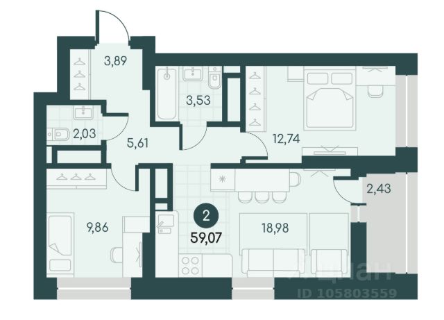 118 736 ₽/м²