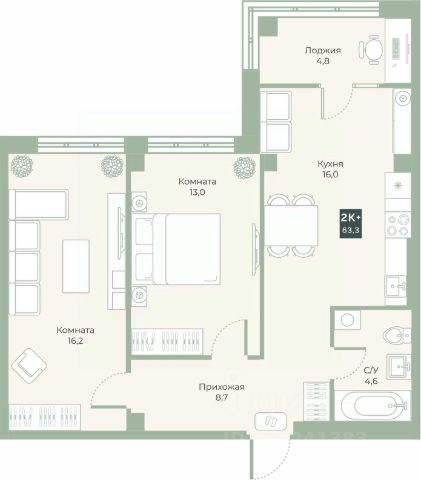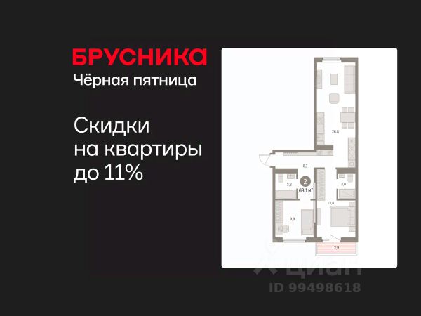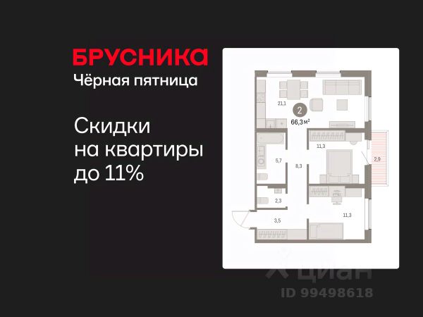 Квартира в счёт первоначального взноса по программе обмена. По всем вопросам звоните в офис продаж, наши менеджеры вам все расскажут! Двухкомнатная квартира с предчистовой отделкой в ЖК "Дом Кино" на 6 этаже. Общая площадь: 67.05 кв.м., жилая: 23.5 кв.м., площадь просторной кухни-гостиной: 21.4 кв.м. Комнаты изолированные, все окна выходят на одну сторону. В квартире один балкон, один совмещенный и один раздельный санузел. Высота потолков 2.7 м. Дом монолитный, многоподъездный, переменной этажности, от 8 до 15 этажей. Квартира находится в 6-й секции высотой 15 этажей в корпусе 1. На этаже 7 квартир. В подъезде 2 пассажирских и 1 грузовой лифт. Окончание строительства - 1 квартал 2027 года. Оформление сделки по договору долевого участия. Квартира с кухней-гостиной и двумя спальнями в Доме кино. Особенности планировки: второй санузел, разнесённые спальни, предчистовая отделка, балкон. Район Центр города "Дом кино" находится в самом центре Кургана, на пересечении улиц Пролетарская и Карла Маркса. Район насыщен всей необходимой инфраструктурой: здесь есть школы, детские сады, поликлиники, больницы, учреждения культуры и досуга, магазины и рестораны, офисы. Рядом расположены автобусные остановки, поэтому можно быстро добраться в любую часть города без автомобиля. В шаговой доступности от дома находится Курганский государственный университет, художественный музей, библиотека имени Маяковского, филармония, городской сквер и торговый центр "Звёздный". Проект Новая точка притяжения Проект расположен на месте бывшего кинотеатра "Звёздный". В советское время он считался лучшим в области, сотни людей собирались на премьерные кинопоказы. В 2002 году, когда зданию потребовался капитальный ремонт, "Звёздный" был закрыт. В 2012 году кинотеатр снесли, а в 2021 году землю приобрела компания Брусника — под строительство нового проекта, который получил название "Дом кино". Проект представляет собой квартал, разомкнутый в сторону сквера. Архитектура дома идентична исторической застройке района и гармонично вписывается в его панораму. Основная часть здания имеет высотность девять этажей. Башня является доминантой и ориентирована на городской сквер, ее высота 15 этажей. Фасады выполнены в теплой цветовой гамме коричневых и песочных оттенков. Яркой архитектурной деталью проекта станет арка высотой более чем в два этажа. Она раскинется над лестницей, которая ведет напрямую в городской сквер из двора. Двор Двор с выходом в сквер Двор - это приватное пространство для жителей, закрытое от машин. В нём спроектированы детская и спортивная площадки, выполненные из натуральных материалов, а также зоны отдыха. Прямой выход в городской сквер расширяет функционал двора. Жители смогут быстро попадать в общественную зону с фонтаном, детскими и спортивными площадками и местами для отдыха. Большую часть территории двора занимает зелень. Озеленение выполнено в стиле пэчворк, и вдохновлено техникой лоскутного шитья. Отдельные фрагменты ландшафта, под
