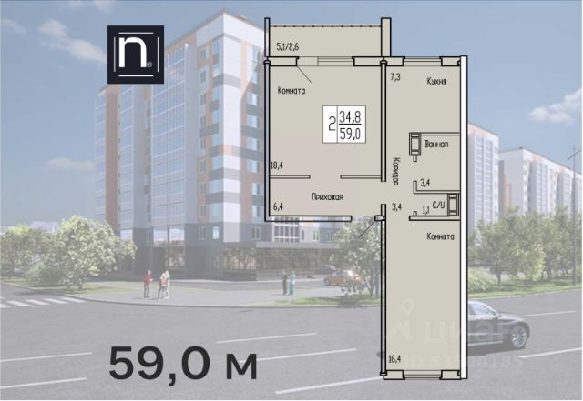 Двухкомнатная квартира от застройщика с предчистовой отделкой в ЖК "Дом Кино" на 9 этаже. Общая площадь: 71.37 кв.м., жилая: 23.5 кв.м., площадь просторной кухни-гостиной: 21.2 кв.м. Квартира угловая, очень светлая, естественная вентиляция при открытии окон. В квартире два балкона, один совмещенный и один раздельный санузел. Высота потолков 2.7 м. Дом монолитный, многоподъездный, переменной этажности, от 8 до 15 этажей. Квартира находится в 6-й секции высотой 15 этажей в корпусе 1. На этаже 7 квартир. В подъезде 2 пассажирских и 1 грузовой лифт. Окончание строительства - 1 квартал 2027 года. Оформление сделки по договору долевого участия. Квартира с кухней-гостиной и двумя спальнями в Доме кино. Особенности планировки: балкон, вид во двор, второй санузел, предчистовая отделка, разнесённые спальни. Район Центр города "Дом кино" находится в самом центре Кургана, на пересечении улиц Пролетарская и Карла Маркса. Район насыщен всей необходимой инфраструктурой: здесь есть школы, детские сады, поликлиники, больницы, учреждения культуры и досуга, магазины и рестораны, офисы. Рядом расположены автобусные остановки, поэтому можно быстро добраться в любую часть города без автомобиля. В шаговой доступности от дома находится Курганский государственный университет, художественный музей, библиотека имени Маяковского, филармония, городской сквер и торговый центр "Звёздный". Проект Новая точка притяжения Проект расположен на месте бывшего кинотеатра "Звёздный". В советское время он считался лучшим в области, сотни людей собирались на премьерные кинопоказы. В 2002 году, когда зданию потребовался капитальный ремонт, "Звёздный" был закрыт. В 2012 году кинотеатр снесли, а в 2021 году землю приобрела компания Брусника — под строительство нового проекта, который получил название "Дом кино". Проект представляет собой квартал, разомкнутый в сторону сквера. Архитектура дома идентична исторической застройке района и гармонично вписывается в его панораму. Основная часть здания имеет высотность девять этажей. Башня является доминантой и ориентирована на городской сквер, ее высота 15 этажей. Фасады выполнены в теплой цветовой гамме коричневых и песочных оттенков. Яркой архитектурной деталью проекта станет арка высотой более чем в два этажа. Она раскинется над лестницей, которая ведет напрямую в городской сквер из двора. Двор Двор с выходом в сквер Двор - это приватное пространство для жителей, закрытое от машин. В нём спроектированы детская и спортивная площадки, выполненные из натуральных материалов, а также зоны отдыха. Прямой выход в городской сквер расширяет функционал двора. Жители смогут быстро попадать в общественную зону с фонтаном, детскими и спортивными площадками и местами для отдыха. Большую часть территории двора занимает зелень. Озеленение выполнено в стиле пэчворк, и вдохновлено техникой лоскутного шитья. Отдельные фрагменты ландшафта, подобно лоскутам, гармонично складываются в планировочные элементы, а затем формируют цельную
