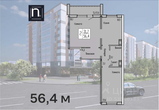 Продаётся 2-комнатная квартира в строящемся доме (Карбышева, 52к2), срок сдачи: II-кв. 2026, общей площадью 51.7 кв.м., на 10 этаже. Новый жилой комплекс "Чемпионы" от застройщика "ГК Кургансельстрой" расположен по адресу: г. Курган, улица Карбышева.