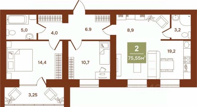 Продаётся 2-комнатная квартира в сданном доме (Витебского, 5 (1 этап)), срок сдачи: II-кв. 2025, общей площадью 81.6 кв.м., на 2 этаже. Новый жилой комплекс "Районы-Кварталы" от застройщика "СЗ Град" расположен по адресу: г. Курган, микрорайон 6А, улица Витебского.