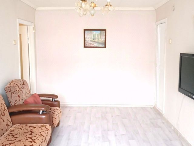 В квартире выполнен ремонт: полы: линолеум, под покрытием деревянный пол стены: выровнены потолки: пластиковая плитка межкомнатные двери: шпонированные (в комнатах - арки) входная дверь: металлическая окна: деревянные, выходят во двор радиаторы отопления: алюминиевые