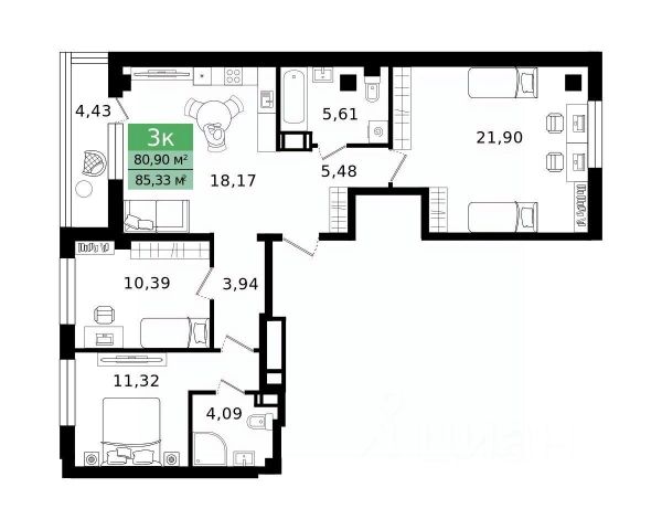 • ✓ В базе Циан 9 3-комнатных квартир на 11 этаже в Кургане