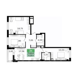 • ✅ Минимальная площадь: 77,6 м²