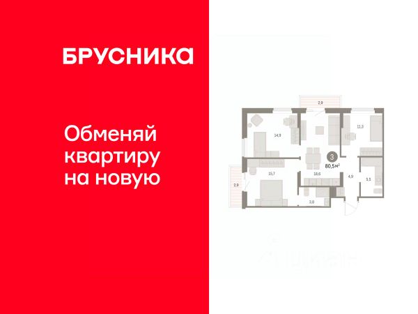 3-комн. квартира с предчистовой отделкой в ЖК "Дом Кино" на 5 этаже. Общая площадь: 80.47 кв.м., жилая: 41.9 кв.м., площадь просторной кухни-гостиной: 18.6 кв.м. Квартира угловая, очень светлая, естественная вентиляция при открытии окон. В квартире два балкона, два совмещенных санузла. Высота потолков 2.7 м. Дом монолитный, многоподъездный, переменной этажности, от 8 до 15 этажей. Квартира находится в 5-й секции высотой 9 этажей в корпусе 1. На этаже 8 квартир. В подъезде 1 пассажирский и 1 грузовой лифт. Окончание строительства - 1 квартал 2027 года. Оформление сделки по договору долевого участия. Квартира с кухней-гостиной и тремя спальнями в Доме кино. Особенности планировки: балкон, предчистовая отделка, разнесённые спальни. Район Центр города "Дом кино" находится в самом центре Кургана, на пересечении улиц Пролетарская и Карла Маркса. Район насыщен всей необходимой инфраструктурой: здесь есть школы, детские сады, поликлиники, больницы, учреждения культуры и досуга, магазины и рестораны, офисы. Рядом расположены автобусные остановки, поэтому можно быстро добраться в любую часть города без автомобиля. В шаговой доступности от дома находится Курганский государственный университет, художественный музей, библиотека имени Маяковского, филармония, городской сквер и торговый центр "Звёздный". Проект Новая точка притяжения Проект расположен на месте бывшего кинотеатра "Звёздный". В советское время он считался лучшим в области, сотни людей собирались на премьерные кинопоказы. В 2002 году, когда зданию потребовался капитальный ремонт, "Звёздный" был закрыт. В 2012 году кинотеатр снесли, а в 2021 году землю приобрела компания Брусника — под строительство нового проекта, который получил название "Дом кино". Проект представляет собой квартал, разомкнутый в сторону сквера. Архитектура дома идентична исторической застройке района и гармонично вписывается в его панораму. Основная часть здания имеет высотность девять этажей. Башня является доминантой и ориентирована на городской сквер, ее высота 15 этажей. Фасады выполнены в теплой цветовой гамме коричневых и песочных оттенков. Яркой архитектурной деталью проекта станет арка высотой более чем в два этажа. Она раскинется над лестницей, которая ведет напрямую в городской сквер из двора. Двор Двор с выходом в сквер Двор - это приватное пространство для жителей, закрытое от машин. В нём спроектированы детская и спортивная площадки, выполненные из натуральных материалов, а также зоны отдыха. Прямой выход в городской сквер расширяет функционал двора. Жители смогут быстро попадать в общественную зону с фонтаном, детскими и спортивными площадками и местами для отдыха. Большую часть территории двора занимает зелень. Озеленение выполнено в стиле пэчворк, и вдохновлено техникой лоскутного шитья. Отдельные фрагменты ландшафта, подобно лоскутам, гармонично складываются в планировочные элементы, а затем формируют цельную композицию. Растения представлены различными видами деревьев, кустарн Продается 3-комнатная квартира в монолитном доме в Курганской области.