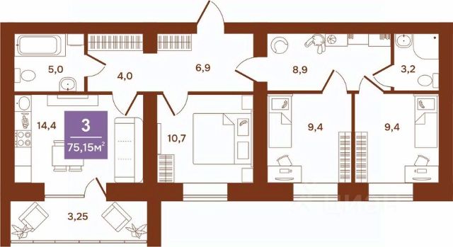 Просторная 3-комн. квартира с предчистовой отделкой в ЖК "Дом Кино" на 2 этаже. Общая площадь: 80.34 кв.м., жилая: 41.9 кв.м., площадь просторной кухни-гостиной: 18.6 кв.м. Угловая квартира, идеально подойдет любителям тишины и панорамных видов. В квартире два балкона, два совмещенных санузла. Высота потолков 2.7 м. Дом монолитный, многоподъездный, переменной этажности, от 8 до 15 этажей. Квартира находится в 5-й секции высотой 9 этажей в корпусе 1. На этаже 8 квартир. В подъезде 1 пассажирский и 1 грузовой лифт. Окончание строительства - 1 квартал 2027 года. Оформление сделки по договору долевого участия. Квартира с кухней-гостиной и тремя спальнями в Доме кино. Особенности планировки: балкон, предчистовая отделка, разнесённые спальни. Район Центр города "Дом кино" находится в самом центре Кургана, на пересечении улиц Пролетарская и Карла Маркса. Район насыщен всей необходимой инфраструктурой: здесь есть школы, детские сады, поликлиники, больницы, учреждения культуры и досуга, магазины и рестораны, офисы. Рядом расположены автобусные остановки, поэтому можно быстро добраться в любую часть города без автомобиля. В шаговой доступности от дома находится Курганский государственный университет, художественный музей, библиотека имени Маяковского, филармония, городской сквер и торговый центр "Звёздный". Проект Новая точка притяжения Проект расположен на месте бывшего кинотеатра "Звёздный". В советское время он считался лучшим в области, сотни людей собирались на премьерные кинопоказы. В 2002 году, когда зданию потребовался капитальный ремонт, "Звёздный" был закрыт. В 2012 году кинотеатр снесли, а в 2021 году землю приобрела компания Брусника — под строительство нового проекта, который получил название "Дом кино". Проект представляет собой квартал, разомкнутый в сторону сквера. Архитектура дома идентична исторической застройке района и гармонично вписывается в его панораму. Основная часть здания имеет высотность девять этажей. Башня является доминантой и ориентирована на городской сквер, ее высота 15 этажей. Фасады выполнены в теплой цветовой гамме коричневых и песочных оттенков. Яркой архитектурной деталью проекта станет арка высотой более чем в два этажа. Она раскинется над лестницей, которая ведет напрямую в городской сквер из двора. Двор Двор с выходом в сквер Двор - это приватное пространство для жителей, закрытое от машин. В нём спроектированы детская и спортивная площадки, выполненные из натуральных материалов, а также зоны отдыха. Прямой выход в городской сквер расширяет функционал двора. Жители смогут быстро попадать в общественную зону с фонтаном, детскими и спортивными площадками и местами для отдыха. Большую часть территории двора занимает зелень. Озеленение выполнено в стиле пэчворк, и вдохновлено техникой лоскутного шитья. Отдельные фрагменты ландшафта, подобно лоскутам, гармонично складываются в планировочные элементы, а затем формируют цельную композицию. Растения представлены различными видами деревьев, Купить 3-комнатную квартиру с отделкой от застройщика в Кургане.