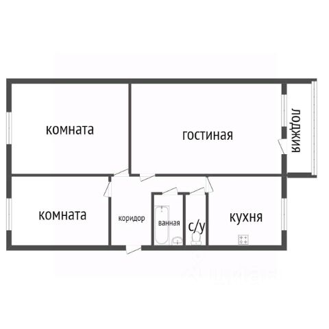Общая площадь - 43 м, жилая - 13 м, кухня - 15 м.