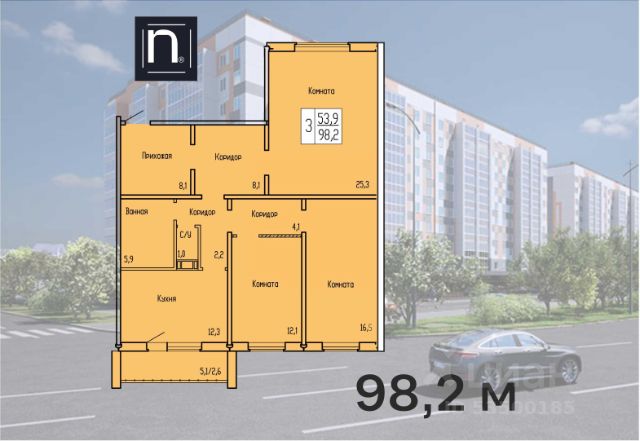 Продаётся 3-комнатная квартира в строящемся доме (Карбышева, 52к2), срок сдачи: II-кв. 2026, общей площадью 98.2 кв.м., на 10 этаже. Новый жилой комплекс "Чемпионы" от застройщика "ГК Кургансельстрой" расположен по адресу: г. Курган, улица Карбышева.