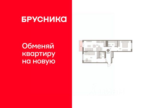 Устали от поисков? 2-комнатная квартира 46 в 3 этапе ЖК "12" — то, что вам нужно! В 2-х минутах от дома есть всё для жизни: поликлиника, супермаркет, детский сад, школа, пункты выдачи, новый бассейн и Ледовый дворец. Общая площадь 70,3 м² включает: - просторная кухня-гостиная (11,9 м²) - комната 1 (12 м²) - комната 2 (16,6 м²) - совмещённый санузел (4,3 м²). Дополнительно: функциональная гардеробная. Увеличенные окна с видом на улицу наполняют помещение светом и свежим воздухом. Потолки высотой 2,7 м. и свободная планировка обеспечивают основу для любых дизайнерских решений. Вы получаете свою квартиру в базовой комплектации: - выровненные и оштукатуренные стены - цементно-песчаная стяжка пола со звукоизоляцией - разводка электричества до места установки розеток и выключателей - остекление входной группы лоджии и окон - современные радиаторы с вертикальной разводкой отопления - надежные входные сейф-двери. Не хотите тратить время на ремонт? У нас есть чистовая отделка в 2-х вариантах. Решать вам! Ваша новая квартира класса комфорт+ уже ждет вас!
