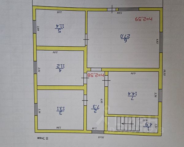 Стены 2этажа дерево зашиты гибсокартоном 9,5мм.