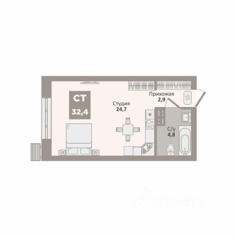 Однокомнатная студия от застройщика с предчистовой отделкой в ЖК "Дом Кино" на 10 этаже. Общая площадь: 23.91 кв.м., площадь гостиной 14.6 кв.м., из которых 5 кв.м. выделено под кухонную зону. Все окна выходят на одну сторону. В квартире один балкон, один совмещенный санузел. Высота потолков 2.7 м. Дом монолитный, многоподъездный, переменной этажности, от 8 до 15 этажей. Квартира находится в 6-й секции высотой 15 этажей в корпусе 1. На этаже 7 квартир. В подъезде 2 пассажирских и 1 грузовой лифт. Окончание строительства - 1 квартал 2027 года. Оформление сделки по договору долевого участия. Студия в Доме кино. Особенности планировки: балкон, предчистовая отделка. Район Центр города "Дом кино" находится в самом центре Кургана, на пересечении улиц Пролетарская и Карла Маркса. Район насыщен всей необходимой инфраструктурой: здесь есть школы, детские сады, поликлиники, больницы, учреждения культуры и досуга, магазины и рестораны, офисы. Рядом расположены автобусные остановки, поэтому можно быстро добраться в любую часть города без автомобиля. В шаговой доступности от дома находится Курганский государственный университет, художественный музей, библиотека имени Маяковского, филармония, городской сквер и торговый центр "Звёздный". Проект Новая точка притяжения Проект расположен на месте бывшего кинотеатра "Звёздный". В советское время он считался лучшим в области, сотни людей собирались на премьерные кинопоказы. В 2002 году, когда зданию потребовался капитальный ремонт, "Звёздный" был закрыт. В 2012 году кинотеатр снесли, а в 2021 году землю приобрела компания Брусника — под строительство нового проекта, который получил название "Дом кино". Проект представляет собой квартал, разомкнутый в сторону сквера. Архитектура дома идентична исторической застройке района и гармонично вписывается в его панораму. Основная часть здания имеет высотность девять этажей. Башня является доминантой и ориентирована на городской сквер, ее высота 15 этажей. Фасады выполнены в теплой цветовой гамме коричневых и песочных оттенков. Яркой архитектурной деталью проекта станет арка высотой более чем в два этажа. Она раскинется над лестницей, которая ведет напрямую в городской сквер из двора. Двор Двор с выходом в сквер Двор - это приватное пространство для жителей, закрытое от машин. В нём спроектированы детская и спортивная площадки, выполненные из натуральных материалов, а также зоны отдыха. Прямой выход в городской сквер расширяет функционал двора. Жители смогут быстро попадать в общественную зону с фонтаном, детскими и спортивными площадками и местами для отдыха. Большую часть территории двора занимает зелень. Озеленение выполнено в стиле пэчворк, и вдохновлено техникой лоскутного шитья. Отдельные фрагменты ландшафта, подобно лоскутам, гармонично складываются в планировочные элементы, а затем формируют цельную композицию. Растения представлены различными видами деревьев, кустарников, а также цветущими многолетниками. Зелень и стены дома выступаю Купить квартиру до 4,6 млн. рублей в Кургане.