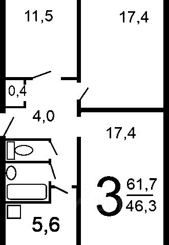 Продается 3-х комнатная квартира, расположенная на 3 этаже 5-ти этажного кирпичного дома. Общей площадью 56 кв.м. Площадь кухни 6,1 кв.м., Комнаты раздельные 18 +11+10 кв.м.