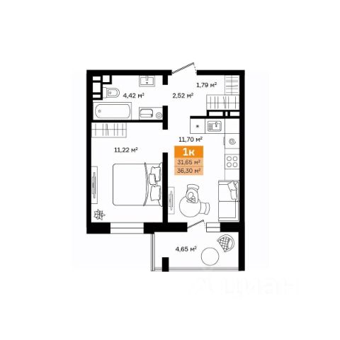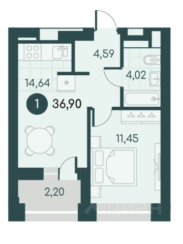 Просторная однокомнатная студия с предчистовой отделкой в ЖК "Дом Кино" на 7 этаже. Общая площадь: 23.91 кв.м., площадь гостиной 14.6 кв.м., из которых 5 кв.м. выделено под кухонную зону. Все окна выходят на одну сторону. В квартире один балкон, один совмещенный санузел. Высота потолков 2.7 м. Дом монолитный, многоподъездный, переменной этажности, от 8 до 15 этажей. Квартира находится в 6-й секции высотой 15 этажей в корпусе 1. На этаже 7 квартир. В подъезде 2 пассажирских и 1 грузовой лифт. Окончание строительства - 1 квартал 2027 года. Оформление сделки по договору долевого участия. Студия в Доме кино. Особенности планировки: балкон, предчистовая отделка. Район Центр города "Дом кино" находится в самом центре Кургана, на пересечении улиц Пролетарская и Карла Маркса. Район насыщен всей необходимой инфраструктурой: здесь есть школы, детские сады, поликлиники, больницы, учреждения культуры и досуга, магазины и рестораны, офисы. Рядом расположены автобусные остановки, поэтому можно быстро добраться в любую часть города без автомобиля. В шаговой доступности от дома находится Курганский государственный университет, художественный музей, библиотека имени Маяковского, филармония, городской сквер и торговый центр "Звёздный". Проект Новая точка притяжения Проект расположен на месте бывшего кинотеатра "Звёздный". В советское время он считался лучшим в области, сотни людей собирались на премьерные кинопоказы. В 2002 году, когда зданию потребовался капитальный ремонт, "Звёздный" был закрыт. В 2012 году кинотеатр снесли, а в 2021 году землю приобрела компания Брусника — под строительство нового проекта, который получил название "Дом кино". Проект представляет собой квартал, разомкнутый в сторону сквера. Архитектура дома идентична исторической застройке района и гармонично вписывается в его панораму. Основная часть здания имеет высотность девять этажей. Башня является доминантой и ориентирована на городской сквер, ее высота 15 этажей. Фасады выполнены в теплой цветовой гамме коричневых и песочных оттенков. Яркой архитектурной деталью проекта станет арка высотой более чем в два этажа. Она раскинется над лестницей, которая ведет напрямую в городской сквер из двора. Двор Двор с выходом в сквер Двор - это приватное пространство для жителей, закрытое от машин. В нём спроектированы детская и спортивная площадки, выполненные из натуральных материалов, а также зоны отдыха. Прямой выход в городской сквер расширяет функционал двора. Жители смогут быстро попадать в общественную зону с фонтаном, детскими и спортивными площадками и местами для отдыха. Большую часть территории двора занимает зелень. Озеленение выполнено в стиле пэчворк, и вдохновлено техникой лоскутного шитья. Отдельные фрагменты ландшафта, подобно лоскутам, гармонично складываются в планировочные элементы, а затем формируют цельную композицию. Растения представлены различными видами деревьев, кустарников, а также цветущими многолетниками. Зелень и стены дома выступают в к Квартира в дешевой новостройке в Курганской области.