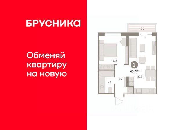 1-комн. квартира от застройщика с предчистовой отделкой в ЖК "Дом Кино" на 4 этаже. Общая площадь: 48.69 кв.м., жилая: 11.9 кв.м., площадь просторной кухни-гостиной: 20.9 кв.м. Все окна выходят на одну сторону. В квартире один балкон, один совмещенный санузел. Высота потолков 2.7 м. Дом монолитный, многоподъездный, переменной этажности, от 8 до 15 этажей. Квартира находится в 5-й секции высотой 9 этажей в корпусе 1. На этаже 8 квартир. В подъезде 1 пассажирский и 1 грузовой лифт. Окончание строительства - 1 квартал 2027 года. Оформление сделки по договору долевого участия. Квартира с кухней-гостиной и одной спальней в Доме кино. Особенности планировки: балкон, предчистовая отделка. Район Центр города "Дом кино" находится в самом центре Кургана, на пересечении улиц Пролетарская и Карла Маркса. Район насыщен всей необходимой инфраструктурой: здесь есть школы, детские сады, поликлиники, больницы, учреждения культуры и досуга, магазины и рестораны, офисы. Рядом расположены автобусные остановки, поэтому можно быстро добраться в любую часть города без автомобиля. В шаговой доступности от дома находится Курганский государственный университет, художественный музей, библиотека имени Маяковского, филармония, городской сквер и торговый центр "Звёздный". Проект Новая точка притяжения Проект расположен на месте бывшего кинотеатра "Звёздный". В советское время он считался лучшим в области, сотни людей собирались на премьерные кинопоказы. В 2002 году, когда зданию потребовался капитальный ремонт, "Звёздный" был закрыт. В 2012 году кинотеатр снесли, а в 2021 году землю приобрела компания Брусника — под строительство нового проекта, который получил название "Дом кино". Проект представляет собой квартал, разомкнутый в сторону сквера. Архитектура дома идентична исторической застройке района и гармонично вписывается в его панораму. Основная часть здания имеет высотность девять этажей. Башня является доминантой и ориентирована на городской сквер, ее высота 15 этажей. Фасады выполнены в теплой цветовой гамме коричневых и песочных оттенков. Яркой архитектурной деталью проекта станет арка высотой более чем в два этажа. Она раскинется над лестницей, которая ведет напрямую в городской сквер из двора. Двор Двор с выходом в сквер Двор - это приватное пространство для жителей, закрытое от машин. В нём спроектированы детская и спортивная площадки, выполненные из натуральных материалов, а также зоны отдыха. Прямой выход в городской сквер расширяет функционал двора. Жители смогут быстро попадать в общественную зону с фонтаном, детскими и спортивными площадками и местами для отдыха. Большую часть территории двора занимает зелень. Озеленение выполнено в стиле пэчворк, и вдохновлено техникой лоскутного шитья. Отдельные фрагменты ландшафта, подобно лоскутам, гармонично складываются в планировочные элементы, а затем формируют цельную композицию. Растения представлены различными видами деревьев, кустарников, а также цветущими многолетниками. Зелень и Продается квартира на 4 этаже в Курганской области.