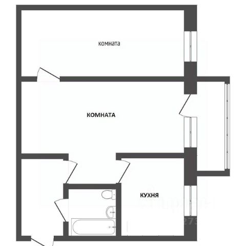 Комната окно - пластиковое (ПВХ), выходит во двор потолок - натяжной пол - линолеум радиатор отопления - чугунный межкомнатная дверь - обычная