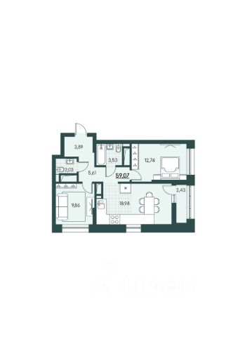 Продаётся двухкомнатная квартира в ЖК "Крылья" от застройщика Геометрия площадью 51.8 квадратных метров в новом панельном доме 2023 года постройки, расположенном в 12-м микрорайоне города Кургана.