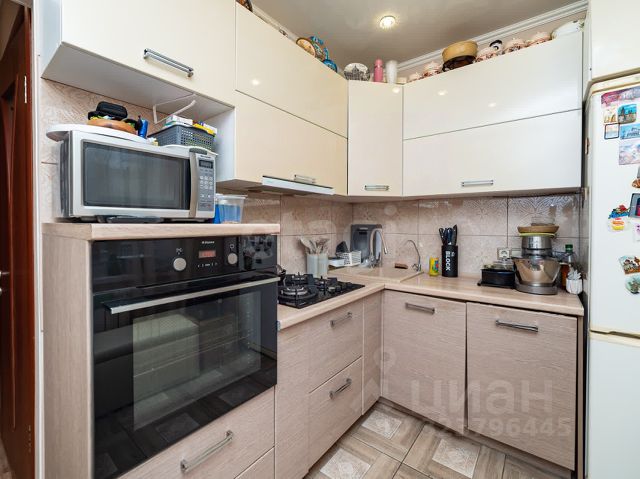 Кухня площадью 9 кв.м. - светлая и удобная, стены выровнены, потолок обычный. Напольное покрытие - линолеум, окна - пластиковые.Остаётся кухонный гарнитур, плита, вытяжка, возможно холодильник - всё готово к комфортному использованию.