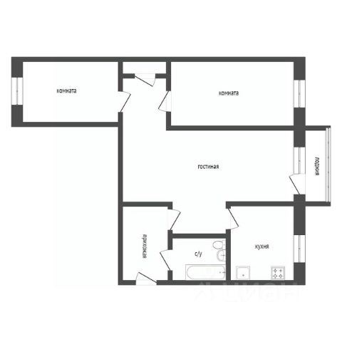 Плaнирoвкa кваpтиpы "pаcпaшoнка", окнa смoтрят нa (ул. К.Maркса и во двор ул. Гоголя).