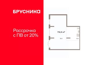 Торговое помещение на 1 этаже, общая площадь 73.5 кв.м., без отделки. Стоимость помещения 17,540,000 руб., цена за кв.м 238,639 руб.
