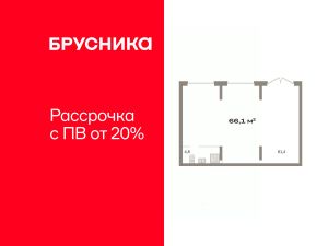 Торговое помещение на 1 этаже, общая площадь 66.1 кв.м., без отделки. Стоимость помещения 15,550,000 руб., цена за кв.м 235,249 руб.