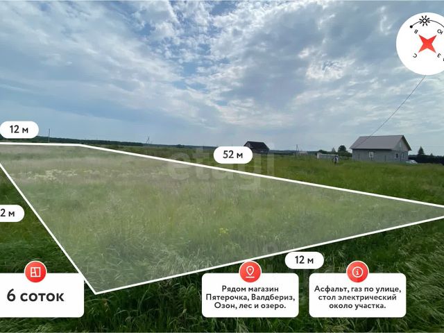 Продаю участок в незатопляемой зоне для строительства дома, коттеджа, газ по улице, 6,12 соток, межевание сделано. На участке летний домик, баня, беседка, скважина, насаждения. Удачное расположение, рядом асфальтированная дорога, остановка общественного транспорта, магазины, лес - грибы, ягоды! До города мин.20.