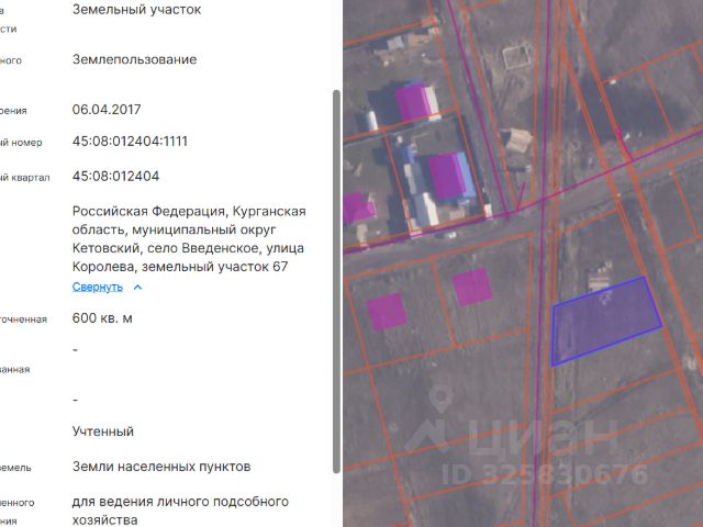 Продается земельный участок в самом высоком и сухом месте с. Введенское Кетовского района Курганской области Категория земли -земли населенных пунктов (ИЖС) Проведено МЕЖЕВАНИЕ Участок правильной прямоугольной формы Рядом с участком уже стоят жилые дома и совсем рядом ЛЕС ГАЗ,ЭЛЕКТОРИЧЕСТВО, ВОДА - рядом с участком (село входит в программу газификации) Хорошая грунтовая подъездная дорога к участку ( на фото видно) Ровный СУХОЙ участок с елочками, что можно использовать для ландшафтного дизайна. Участок - чистый, без старых построек и фундаментов. Можете сразу строить так как вы хотите, а не думать правильно ли заложен старый фундамент и вообще подходит ли он под ваши цели и мечты. Участок находится в НЕЗАТОПЛЯЕМОЙ ЗОНЕ!! На фото топографической карты местности видно, что участок находится на возвышенности ( 109 м) с разницей более 20 метров от участков, находящихся в низине (82-90 м), где высока вероятность подтопления/затопления участков , особенно весной. -- Всего 27 км ( полчаса езды) от г. Курган -- В поселке есть вся необходимая инфраструктура ( садик , школы, магазины, почта) -- Поселок примыкает к автомобильной дороге федерального значения Р254 Иртыш — Челябинск — Курган — Омск — Новосибирск. Кадастровый номер участка : 45:08:011201:2198. Пожалуйста , приходите , осматривайте, доступ свободный Я-собственник! Есть вопросы- пишите в чат))