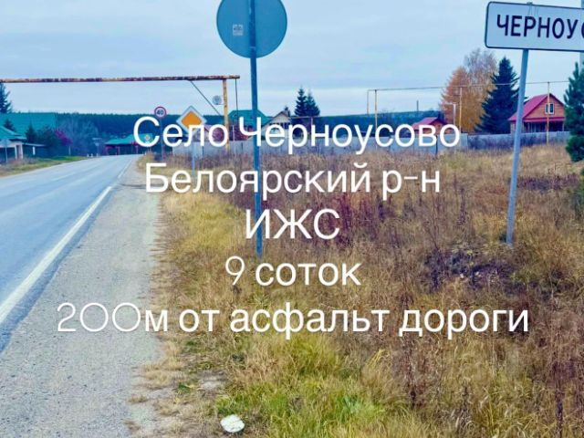 Участок квадратной формы, находится в центре села Черноусово в тихом малолюдном районе, рядом с лесным массивом. В лесу недалеко есть стадион. Село расположено вдоль реки Исеть с живописными гористыми берегами, островами. Дороги по селу асфальтированные. Курсируют автобусы до Екатеринбурга и пос. Белоярский. Удалённость от Екатеринбурга 50 км. На автомобиле можно доехать за 40 минут. Вся инфраструктура в шаговой доступности (магазины, администрация села, амбулатория, детский сад, школа, почта, автобусная остановка). В селе имеется действующая церковь. На участке есть помещение с прочными заливными стенами площадью 50 кв.м. и высотой стен 3,5 м. Торг только реальному покупателю.