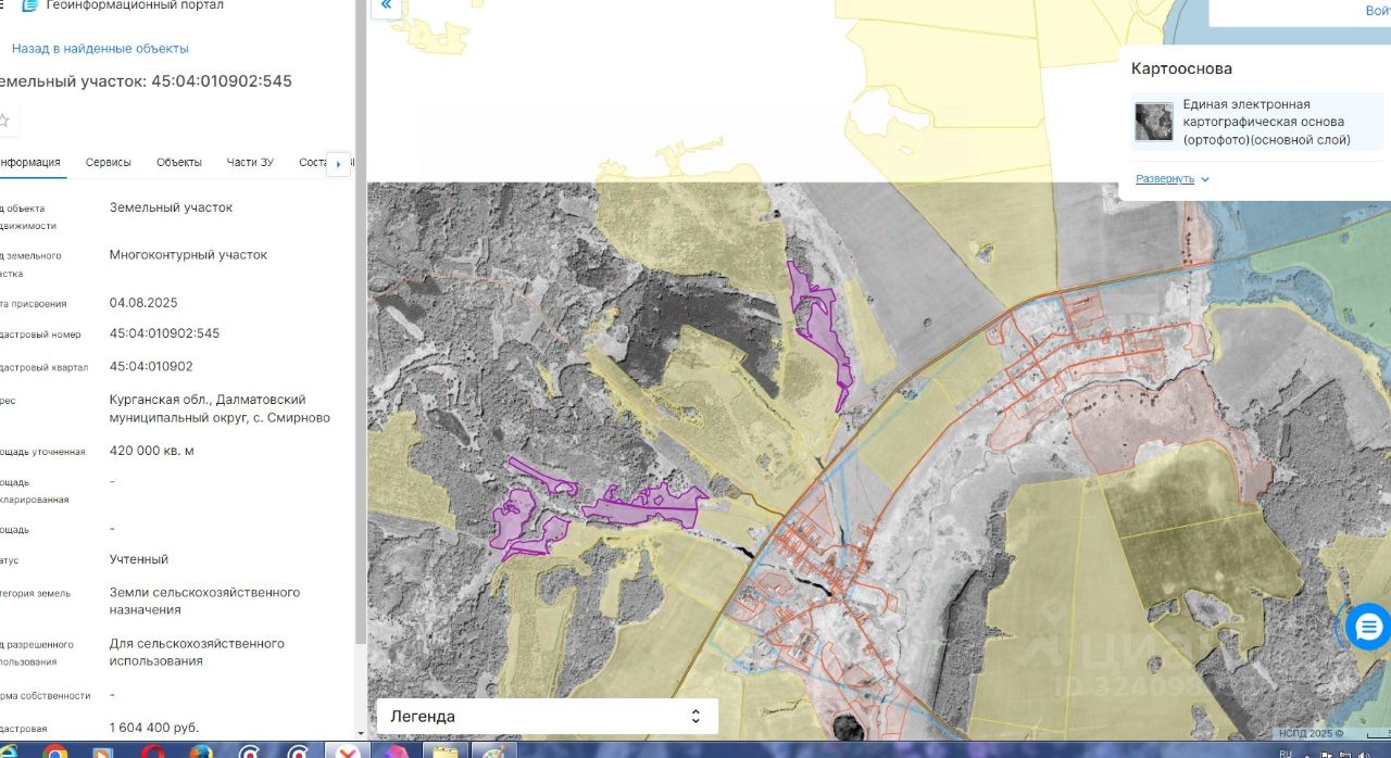Аукцион в электронной форме на право заключения договора аренды земельного участка из земель сельскохозяйственного назначения, государственная собственность на которые не разграничена площадью 420000 кв.м., с кадастровым номером 45:04:010902:545 местоположение: Курганская обл., Далматовский муниципальный округ, с. Смирново, разрешенное использование для сельскохозяйственного использования