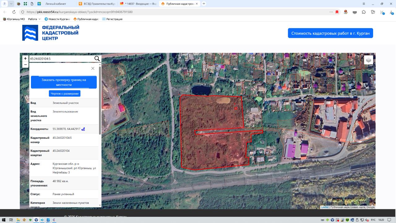 Курганская обл., р-н Юргамышский, рп. Юргамыш, ул. Нефтебазы 3, общей площадью 48982 кв.м., с кадастровым номером 45:24:020104:5, из земель населенных пунктов с разрешённым видом использования — для нужд промышленности;