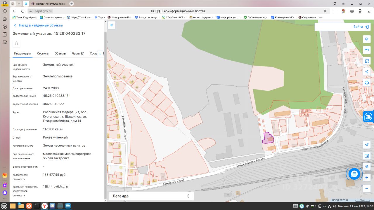 Лот 2. Продажа права на заключение договора аренды земельного участка государственной собственности с кадастровым номером 45:26:040233:17 площадью 1170 кв.метров с разрешенным использованием малоэтажная многоквартирная жилая застройка, по адресу: Российская Федерация, Курганская область, г.Шадринск, ул. Птицекомбината, дом 14. Границы определены в соответствии с федеральными законами.