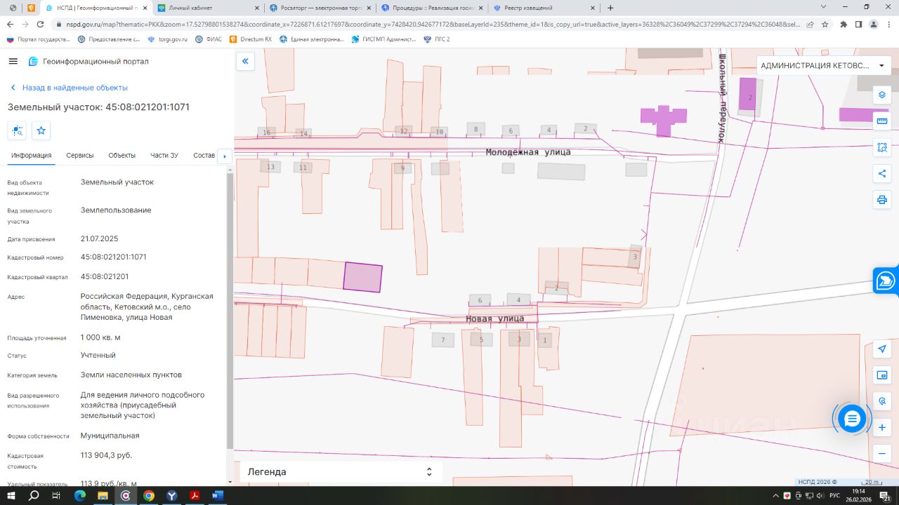 - кадастровый номер 45:08:021201:1071; - вид разрешенного использования земли населенных пунктов; - категория земель: для ведения личного подсобного хозяйства (приусадебный земельный участок); - площадь 1000 кв.м.
