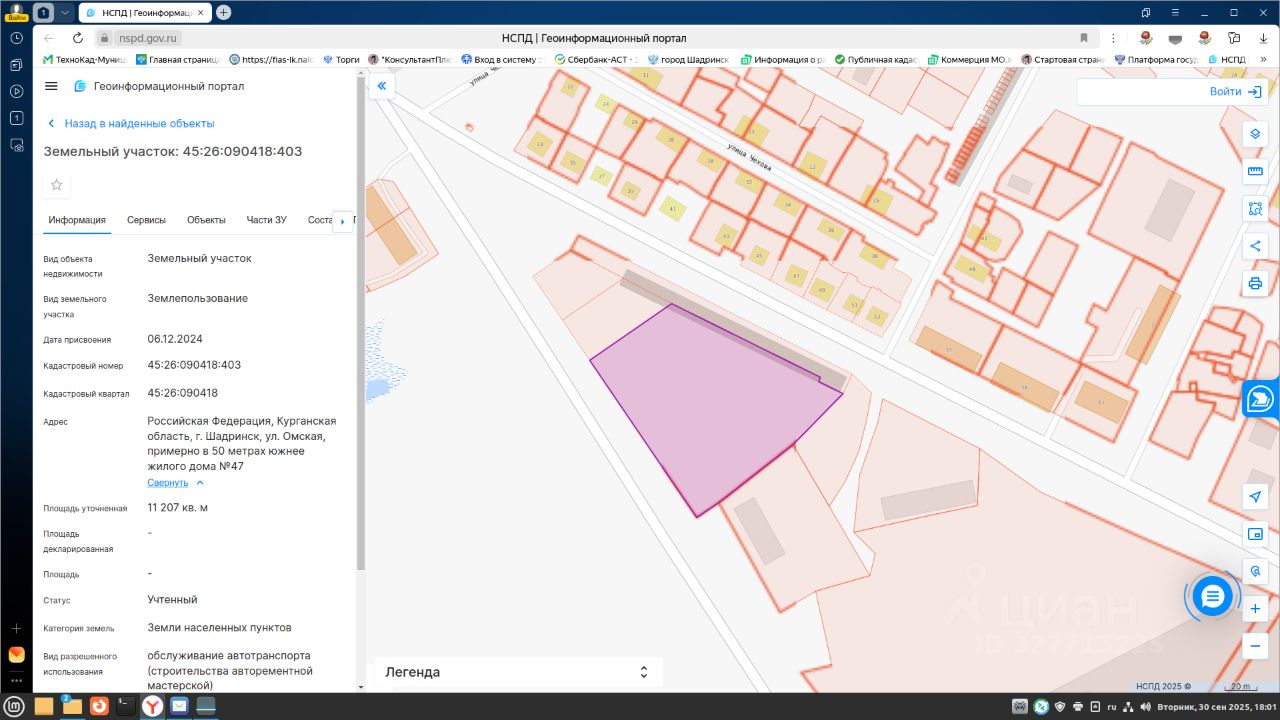 Лот 7. Продажа права на заключение договора аренды земельного участка государственной собственности с кадастровым номером 45:26:090418:403 площадью 11207 кв.метров с разрешенным использованием обслуживание автотранспорта (строительства авторемонтной мастерской), по адресу: Российская Федерация, Курганская область, г. Шадринск, ул. Омская, примерно в 50 метрах южнее жилого дома 47. Границы определены в соответствии с федеральными законами.