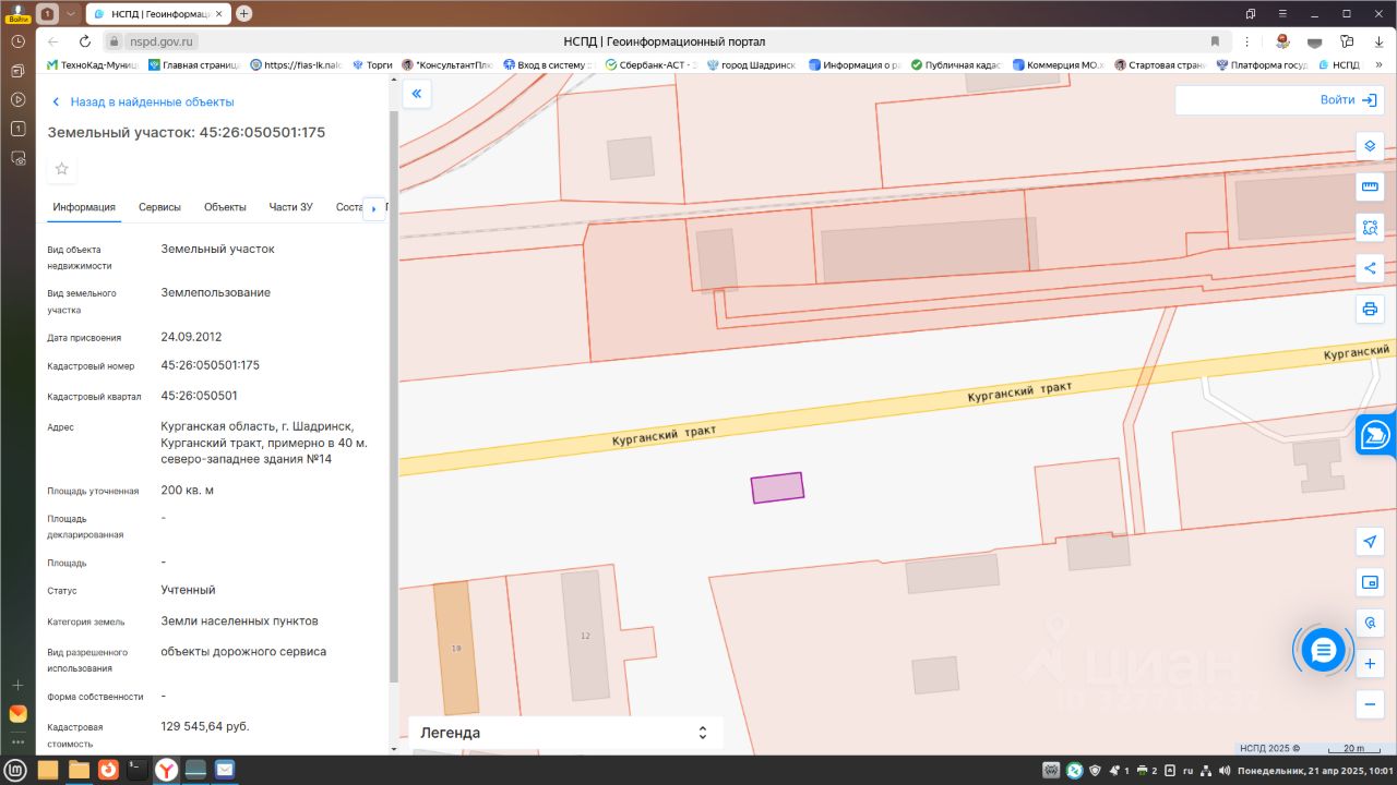 Лот 16. Продажа права на заключение договора аренды земельного участка государственной собственности с кадастровым номером 45:26:050501:175 площадью 200 кв.метров с разрешенным использованием объекты дорожного сервиса, по адресу: местоположение установлено относительно ориентира, расположенного в границах участка, почтовый адрес ориентира: Курганская область, г.Шадринск, Курганский тракт, примерно в 40 м северо-западнее здания 14. Границы определены в соответствии с федеральными законами.