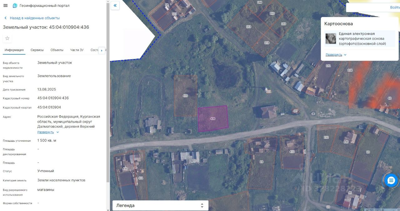 Аукцион в электронной форме на право заключения договора аренды земельного участка из земель населенных пунктов, собственность Далматовский муниципальный округ Курганской области площадью 1500 кв.м., с кадастровым номером 45:04:010904:436 местоположение: Российская Федерация, Курганская область, муниципальный округ Далматовский, деревня Верхний Суварыш, улица Центральная, разрешенное использование магазины