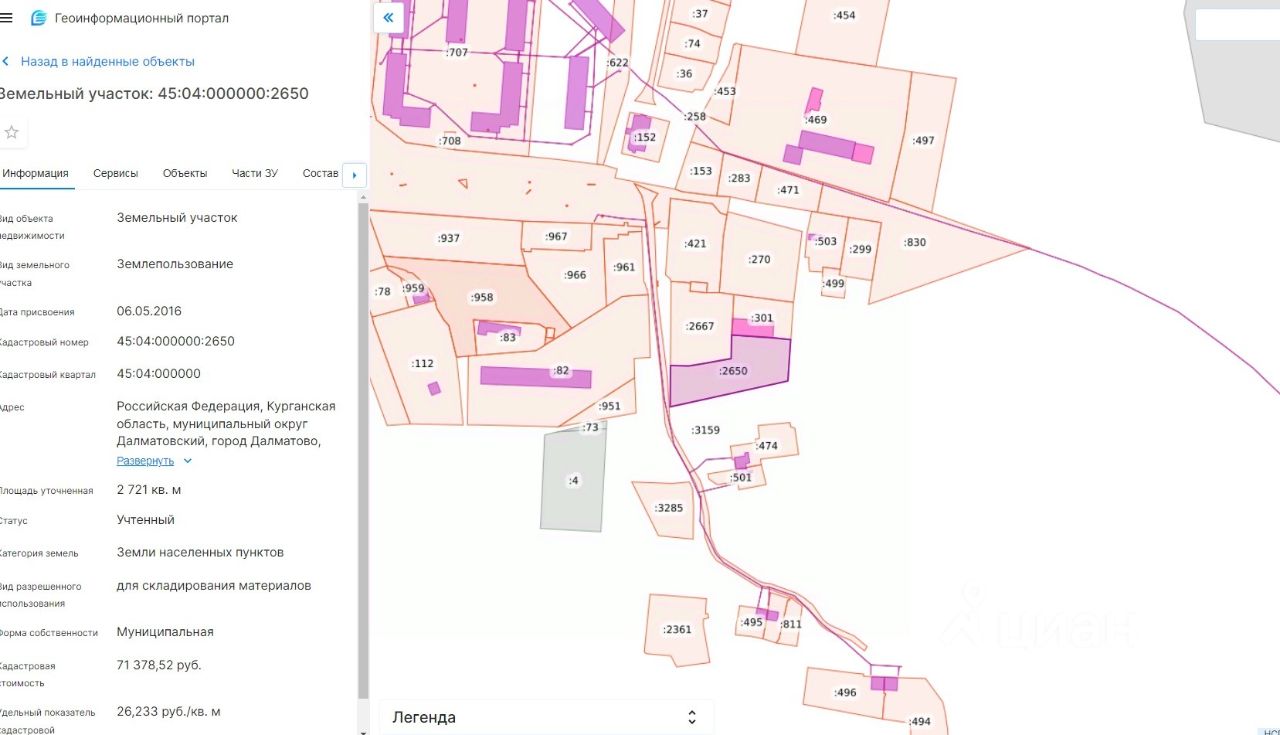 Аукцион в электронной форме на право заключения договора аренды земельного участка из земель населенных пунктов, собственность Далматовский муниципальный округ Курганской области площадью 2721 кв.м., с кадастровым номером 45:04:000000:2650 местоположение: Российская Федерация, Курганская область, муниципальный округ Далматовский, город Далматово, улица М.Горького, 80, разрешенное использование для складирования материалов