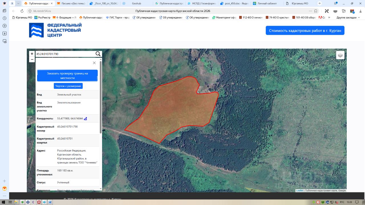 Российская Федерация, Курганская область, Юргамышский район, в границах земель ТОО "Чинеево"