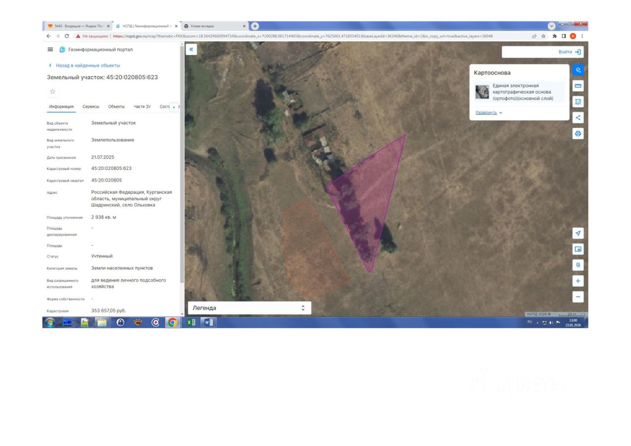 Земельный участок с кадастровым номером 45:20:020805:623, площадью 2938 кв. м, адрес: Российская Федерация, Курганская область, муниципальный округ Шадринский, село Ольховка, категория земель земли населенных пунктов, разрешенное использование: "для ведения личного подсобного хозяйства".