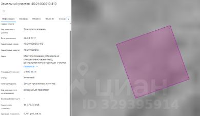 Земельный участок с кадастровым номером 45:21:030210:410 площадь 2500 по адресу Курганская область, р-н Шатровский, с Шатрово, ул Гагарина, 29, в 145 м к юго-западу от участка
