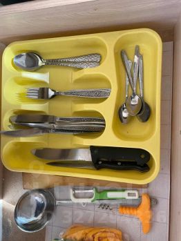посуда, фен, утюг, гладильная доска.