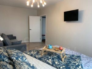 однакомнатная квартира в новостройке, после ремонта. окна выходят на солнечную сторону, квартира расположена на против ТЦ РИО, территория ограждена имеется парковка. на территории ДК расположено две игровые площадки, спортивный комплекс для детей и взрослых. в квартире есть все необходимое для проживания. для каждого гостя имеется большое банное полотенце и полотенце для я рук, постельное белье и средства гигиены, кровать с артопедическим матрасом фирмы Askona, два дивана и два телевизора на кухне и в спальни. предоставляем отчетные документы, работаем за наличный и безналичный расчет. для шумных компаний, праздников и молодых людей в возрасте до 23 лет квартиру не сдаем