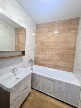 Ванная комната и сан/узел совмещены, выполнены в кафеле. Здесь же установлена стиральная машина, полотенцесушитель.