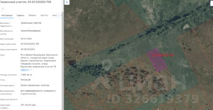 земельный участок с кадастровым номером 45:25:020202:708, площадью 1484 кв. м, с разрешенным использованием - для индивидуального жилищного строительства, расположенный по адресу: г. Курган, пос. Левашово, ул. Курортная, участок 18