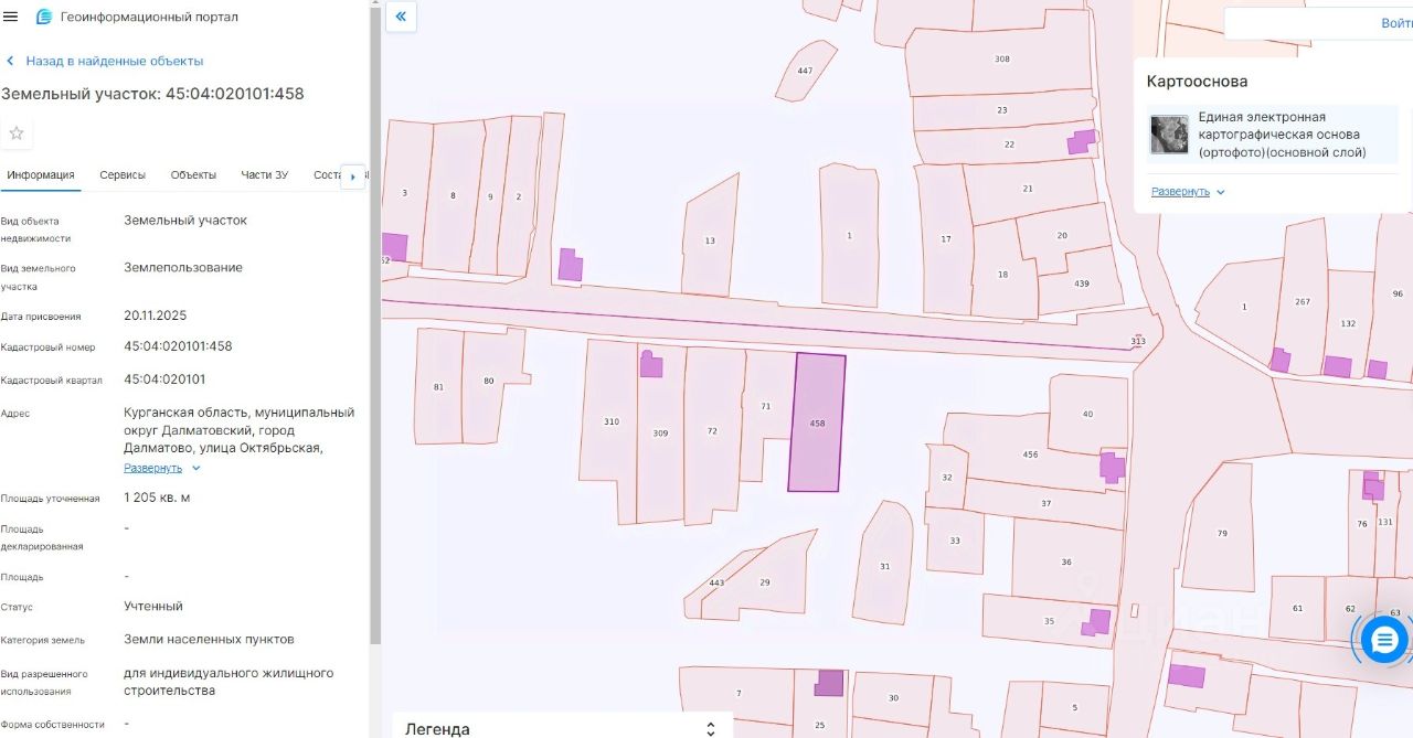 Аукцион в электронной форме по продаже земельного участка из земель населенных пунктов, государственная собственность на которые не разграничена, площадью 1205 кв.м., с кадастровым номером 45:04:020101:458 местоположение: Курганская область, муниципальный округ Далматовский, город Далматово, улица Октябрьская, земельный участок 6, разрешенное использование для индивидуального жилищного строительства