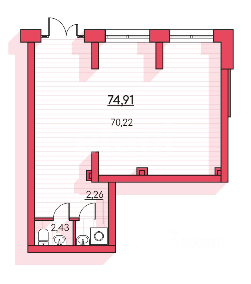 Общая площадь 74,91 кв. м.