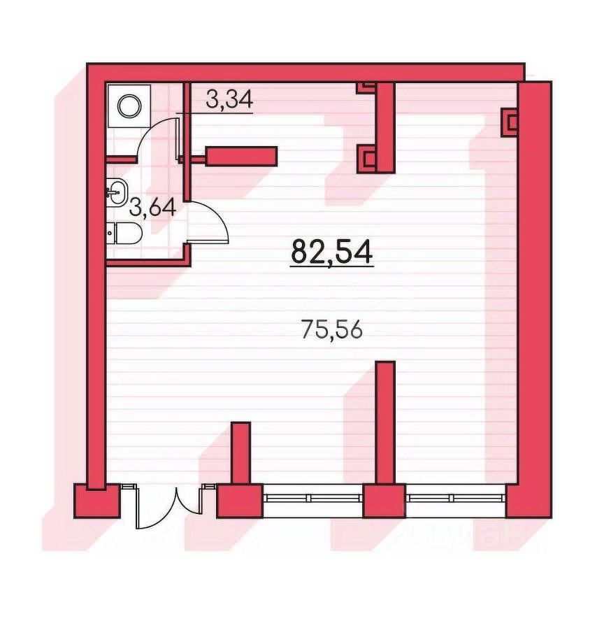 Помещение свободного назначения с 1 туалетом.