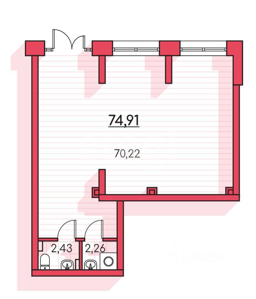 Помещение свободного назначения с 1 туалетом.